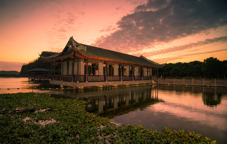 Chinese pavilion at the lake. Udon Thani, Thailand