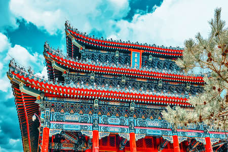 Beautiful Chinese temple in Beijing, China. Architectural details.