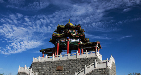 Pagoda of chinese temple in the blue sky background.