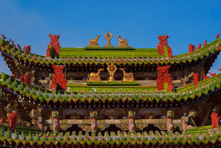 Ancient Mongolian style architecture details. Palace of Bogdo Gegen