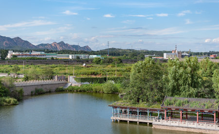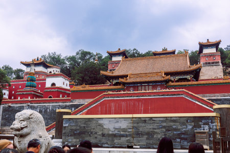 Beijing, China - October 5, 2025: Architecture Summer palace with natural landscape, combining historic structures, open courtyards, and tranquil outdoor atmosphere