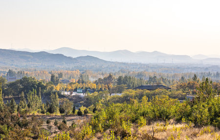 Landscape view of an autumn forest in China, closeup of photo