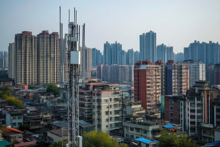 Busy Urban Scene with Prominent Internet Tower