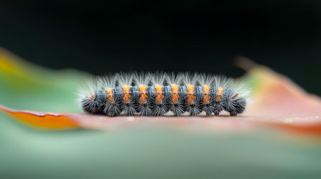 A mesmerizing caterpillar coils upon itself, its vibrant colors and intricate patterns creating a captivating natural display
