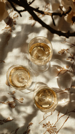 Realistic white wine neutral colors warm lighting highly detailed cozy atmosphere restaurant no people extreme closeup. Generative AI Generated