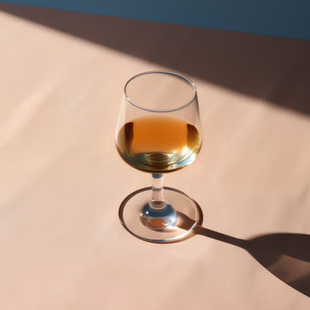 AI Generated. A Glass of Golden Liquid in Warm Sunlight on a Wooden Table
