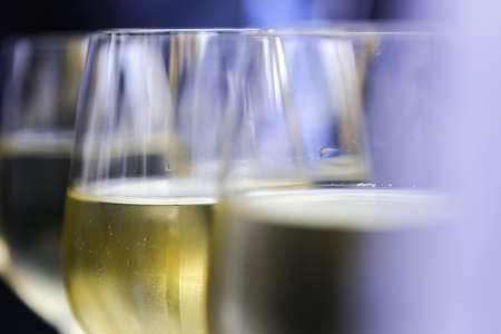 Blur background of glass of white wine with selective focus, shallow DOF