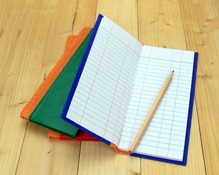 Books and pencils on the desk top view