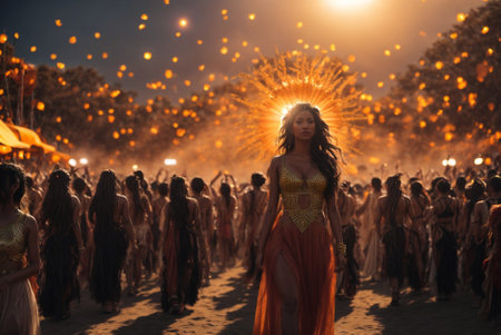 Silhouette of a girl at a music festival in the rays of the setting sun. Sunset at a Music Festival: Silhouette of a Female Body in Sunlight.
