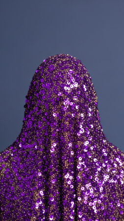 A vertical (9:16) composition macro shot focusing on a rich, textured surface of gold and royal purp
