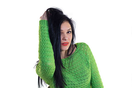 Girl in green sweater - isolated photo portrait