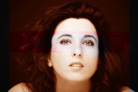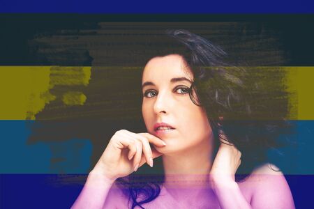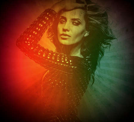 Retro styled grunge portrait of young beautiful woman