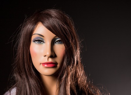 Portrait of brunette mannequin, close-up