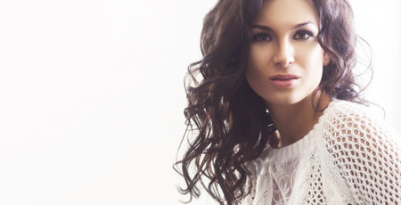 Portrait of beautiful young brunette woman with perfect makeup.
