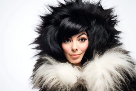 Portrait of a beautiful woman in a fur coat with black hair