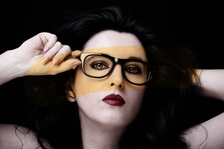 Portrait of a beautiful woman with bright make-up and black hair.