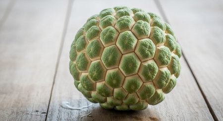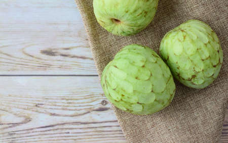 Custard apple, fruit on a rustic background. Zenit view and copy space.