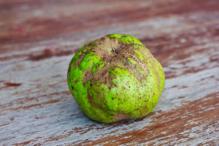 Guanabana on an old wooden background - exotic tropical fruit - regional fruits from Vietnam.