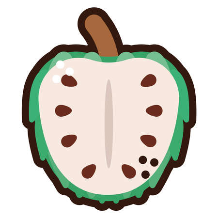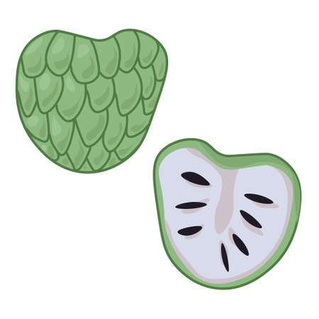 Annona fruit, whole and half, green tropical fruit with dark small seeds vector illustration