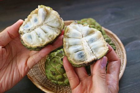 Delectable Split Sugar Apple Fruit or Annona Squamosa in Hands