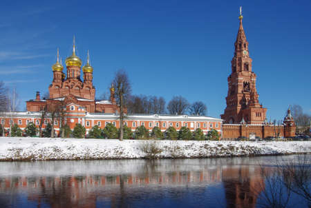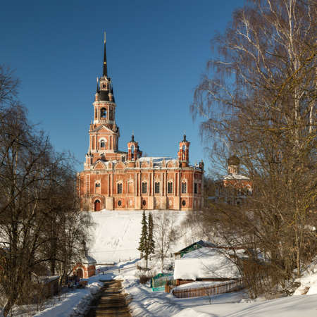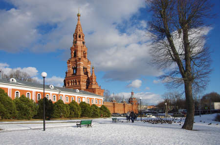 The Mozhaisk Kremlin. Novo-Nikolsky Cathedral in winter. Russian Orthodox Church. High building in pseudo-Gothic style. Russia, Moscow region, Mozhaisk.