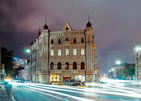 Evening sunset at central district of Rostov-on-Don. Beautiful architecture of historical buildings.