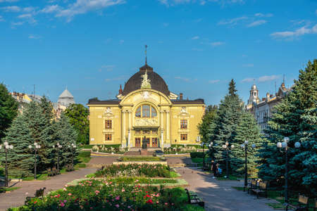 Chernivtsi, Ukraine 11.07.2021. Chernivtsi Music and Drama Theater named after Olga Kobylyanska on a sunny summer morning