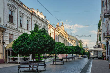 Chernivtsi, Ukraine 11.07.2021. Main street of the old town of Chernivtsi, Ukraine, on a sunny summer morning