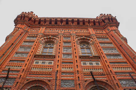 Red brick building of the main University of Western Ukraine, Chernivtsi University, a bright sunny day