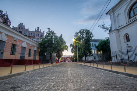 Empty street in the center of the east European city of Kiev at dusk.