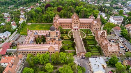 Ancient University in Chernivtsi from a height.