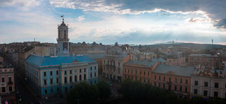 Lviv old city panorama view at sunrise.