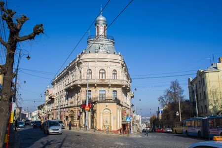 LVIV, UKRAINE - February 28, 2019: old european street view. retro buildings