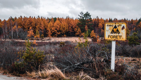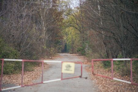 sign of radioactive contamination in a forest in Chernobyl Ukraine in autumn