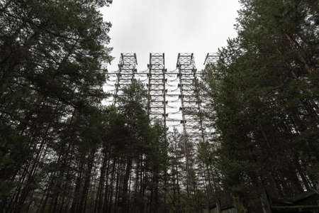 Duga - Soviet over-the-horizon OTH radar system. Duga-3 Russian Woodpecker - antenna complex, military object of USSR ABM. Chernobyl Exclusion Zone, Pripyat, Ukraine