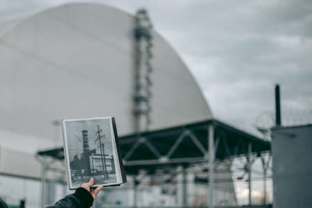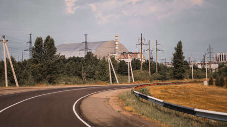 Sarcophagus over the 4th power unit of a nuclear power plant in Pripyat in Chernobyl