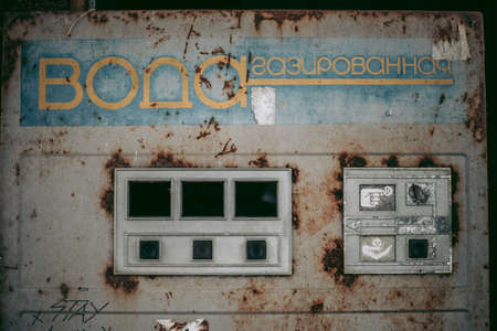 Old metal soviet machine for carbonating water in Pripyat in Chernobyl