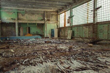 UKRAINE, PRIPYAT - AUGUST 19, 2017: Gym in school number 3 of Pripyat
