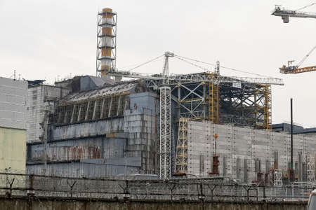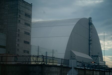 Sarcophagus over the 4th power unit of a nuclear power plant in Pripyat in Chernobyl