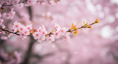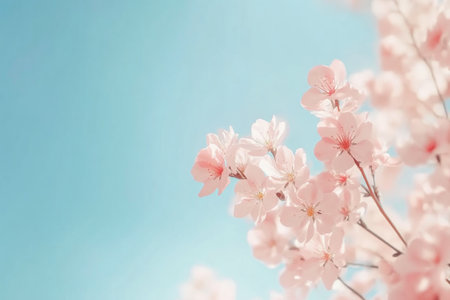 Elegant pink cherry blossoms blooming on soft pastel background