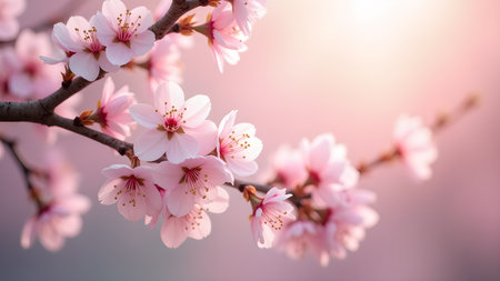 A captivating image of delicate pink cherry blossoms bathed in soft light, evoking a sense of tranquility and natural beauty.