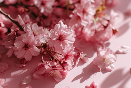 cherry blossom petals on pink background, cherry blossom