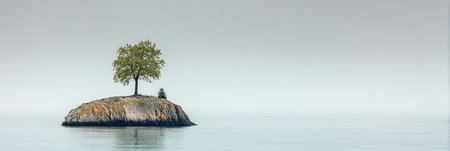 Solitary Tree on an Island Surrounded by Serene Lake Water, Capturing Nature s Idyllic Beauty