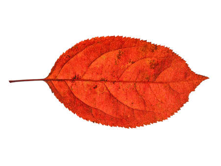 close up of an autumn leaf on white background with clipping path