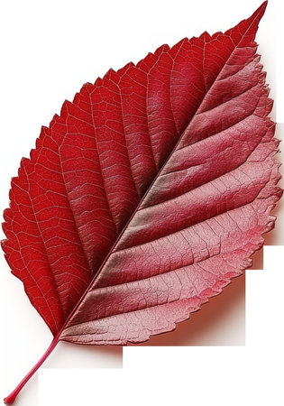 Close-up of a red autumn leaf on transparent background. Nature and seasonal change concept