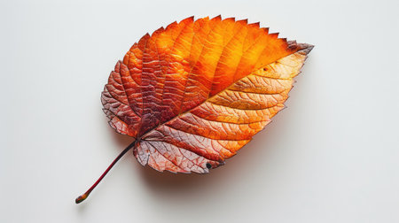 Aesthetic leaf with vibrant autumn colors, copy space, white background, presentation template. Generative AI.