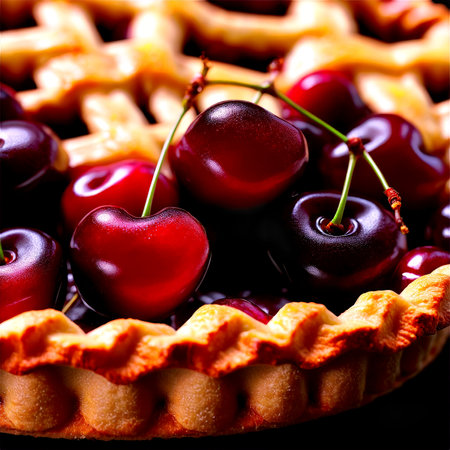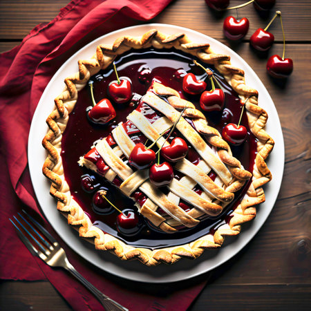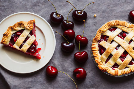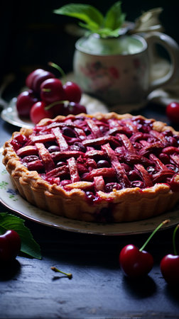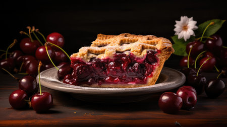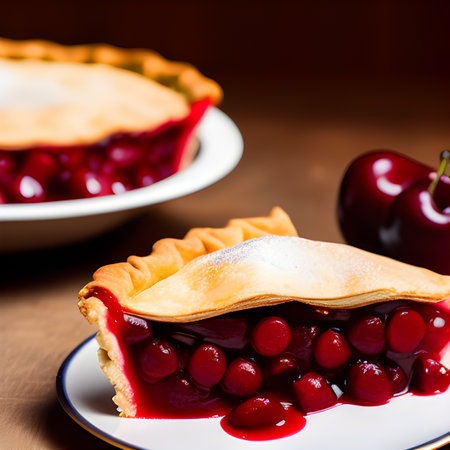 Indulging in the Irresistible Delights of a Freshly Baked Cherry Pie on National Cherries Jubilee Day AI Generated.