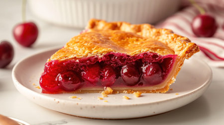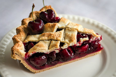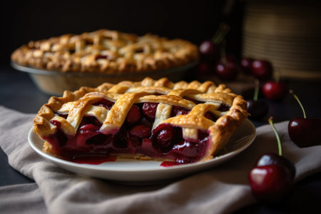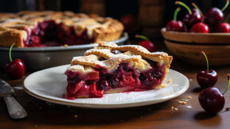 sweet and tart cherry pie on a white plate, created with generative ai