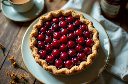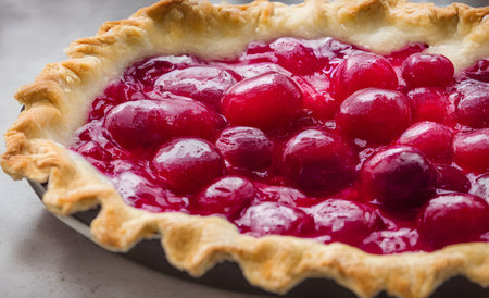 Open cherry pie with filling of bright berry jelly