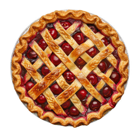 A freshly baked cherry pie with a lattice crust